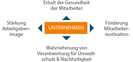 Durch regelmäßige Bewegung mit dem Fahrrad verringert sich die krankheitsbedingte Abwesenheit in Unternehmen. Zudem erlangen diese eine höhere Wertschöpfung und Produktivität durch die gesteigerte Motivation und die Verbesserung des Arbeitsklimas der Mitarbeiter.